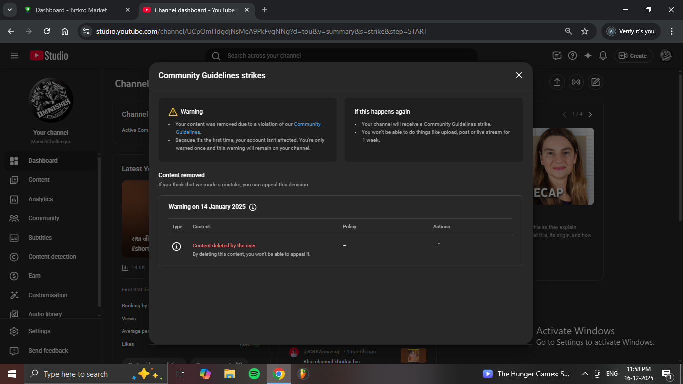 Community Guidelines Strike? YES